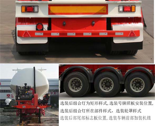 部封閉不可開槽,后部不可開啟;罐體總?cè)萘?48立方米,罐體有效容積:46立方米;罐體外形尺寸A型:罐體長(含封頭)10500mm,寬2550mm,最大截面處高度3250mm,前后封頭直徑2550mm,選裝罐體外形尺寸B型:罐體長(含封頭)11100mm,寬為2550mm,最大截面處高度3250mm,前后封頭直徑2550mm,選裝罐體外形尺寸C型:罐體長(含封頭)12300mm,寬為2550mm,最大截面處高度3250mm,前后封頭直徑2550mm;整車長度(mm)為:13000,加裝機(jī)組,罐體外形尺寸為B型、C型;整車長度(mm)為:12300,加裝機(jī)組,罐體外形尺寸為A型,不加裝機(jī)組,罐體外形尺寸為B型、C型;整車長度(mm)為:11650,不加裝機(jī)組,罐體外形尺寸為A型;選裝后組合燈為矩形樣式,選裝號牌照板安裝位置,選裝后組合燈所在部件樣式,選裝管道樣式及罐體椎體個(gè)數(shù),選裝升降式扶梯,選裝輪罩樣式,選裝后部尾部標(biāo)志板位置,選裝車輛前部加裝機(jī)組,選裝前封頭下部大梁樣式,選裝卸口位置(側(cè)面或后側(cè)),選裝空氣懸架,選裝上部出料管結(jié)構(gòu),選裝前端加裝吊桿樣式,選裝進(jìn)氣管道樣式;ABS系統(tǒng)生產(chǎn)廠家:廣州瑞立科密汽車電子股份有限公司,梁山順安達(dá)汽車科技有限公司,廣州市西合汽車電子裝備有限公司,山東梁山德爾福汽車科技有限公司,型號:CM2XL-4S/2M,SAD-ABS4S/2M,XH-GQ4S2M-E01,DEF-ABS4S/3M;側(cè)面及后下部防護(hù)裝置所用材料材質(zhì)為:Q235,側(cè)面及后下部防護(hù)裝置與車輛連接方式均為:螺栓連接或焊接,后部防護(hù)裝置的主要尺寸參數(shù):斷面尺寸(mm)為120×68,離地高度為:500mm,選裝側(cè)面防護(hù)裝置所用材料材質(zhì)為:鋁合金,與車架連接方式為螺栓連接;車長/牽引銷到車輛最前端距離/軸距/后懸對應(yīng)關(guān)系為:11650/455/7650+1310+1310/925,12300/1105/7650+1310+1310/925,12300/455/8400+1310+1310/825,13000/1155/8300+1310+1310/925,13000/1155/8400+1310+1310/825,12300/805/7950+1310+1310/925,13000/1505/7950+1310+1310/925.