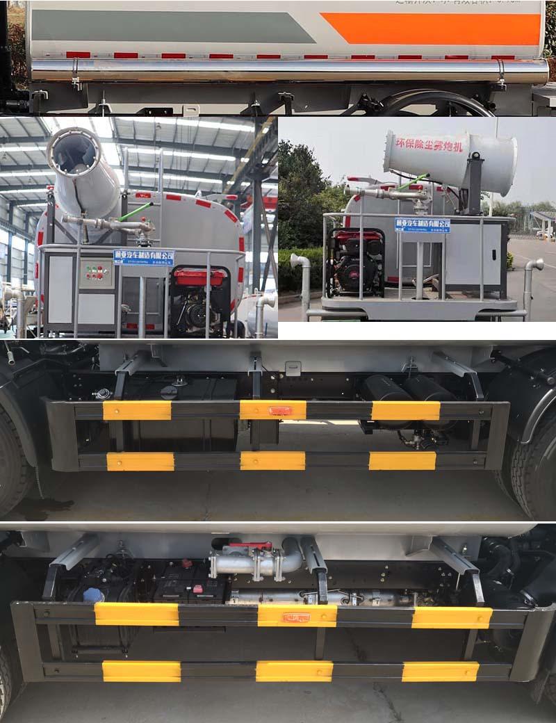 | 其它 | 專用裝置為抑塵霧炮,用于城市抑塵;僅采用3800mm軸距;罐體有效容積為7.6立方米,罐體截面形狀:罐體尺寸(長×長軸×短軸)(mm):4100×2000×1250;側(cè)后防護裝置材料均為:Q235B,側(cè)后防護裝置與車架連接方式均為螺栓連接,后防護裝置截面尺寸為:120×60mm,離地高度410mm;ABS型號及生產(chǎn)廠家:ABS/ASR-24V-4S/4M/襄陽東風(fēng)隆誠機械有限責(zé)任公司.隨底盤選裝尿素罐、儲氣筒、蓄電池等安裝位置,選裝噴霧機安裝位置,選裝側(cè)面加裝裝飾管. | ||