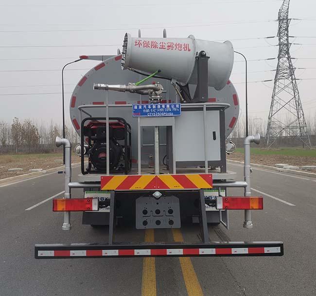 | 其它 | 裝備有罐體和噴灑系統(tǒng),用于園林綠化噴灑作業(yè).介質(zhì):水,整備質(zhì)量為:10600kg,罐體有效容積為14.2立方米,罐體尺寸(長×長軸×短軸)(mm):5800×2300×1600;整備質(zhì)量為:10350kg,罐體有效容積為14.45立方米,罐體尺寸(長×長軸×短軸)(mm):6000×2300×1550;僅采用4350+1350mm軸距;車輛前部加裝前自動水炮,整車長度為10740mm,前伸為440mm,選裝不加裝前自動水炮時整車長度為10300mm;選裝不加裝后霧炮裝置;選裝LED箭頭指示燈;選裝加裝后上噴霧;側(cè)后防護裝置材料均為:Q235,側(cè)后防護裝置與車架連接方式均為螺栓連接,后防護裝置截面尺寸為:120×68mm,后防護裝置離地高度480mm,ABS型號及生產(chǎn)廠家為:3631010-C2000/東科克諾爾商用車制動系統(tǒng)(十堰)有限公司,J ABS/焦作博瑞克控制技術(shù)有限公司. | ||