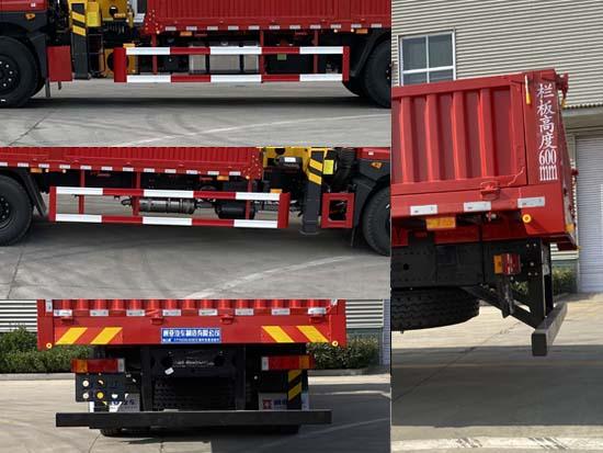 | 其它 | 該車用于貨物的起吊和托運,專用裝置貨箱和吊機;選裝欄板樣式,選裝后支腿,選裝座椅操作位置及支腿,隨車選裝駕駛室樣式;僅采用5850+1350(mm)軸距;側、后防護材料均為:Q235,連接方式均為:螺栓連接,后部防護截面尺寸(mm):120×80,后部防護離地高度(mm):480;ABS型號及生產廠家為:3631010-C2000/東科克諾爾商用車制動系統(tǒng)(十堰)有限公司,J ABS/焦作博瑞克控制技術有限公司;發(fā)動機/油耗值(L/100km)對應關系為:YCS06270-60/32.4;吊機型號/吊機重量(kg)/最大起升載荷(kg)分別為:TSQ300/5000/12000.安裝有具有衛(wèi)星定位功能的行駛記錄儀,該車型加裝ETC車載裝置。 | ||