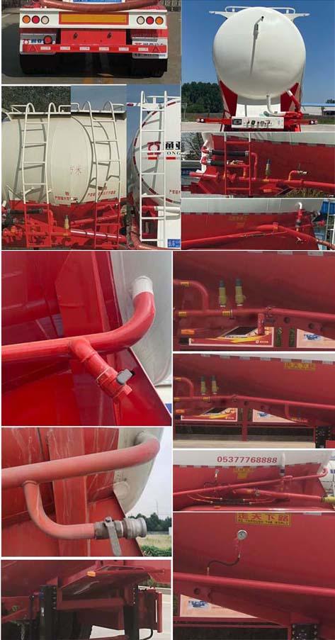 頂部封閉不可開槽,后部不可開啟;罐體總?cè)萘?29.7立方米,有效容積:28.3立方米,運(yùn)輸介質(zhì):固井專用水泥,罐體尺寸長(含封頭)8200mm,最大截面處寬2550mm,最大截面處高3080mm,前后封頭直徑為2050mm(選裝前后封頭直徑為1860mm),選裝罐體尺寸長(含封頭)7770mm,最大截面處寬2550mm,最大截面處高3100mm,前后封頭直徑為2050mm(選裝前后封頭直徑為1860mm);選裝車輛不加裝機(jī)組時(shí),整車長度(mm)為:8400,8180,選裝走臺(tái)樣式,選裝后組合燈為圓形樣式,選裝爬梯安裝位置(前部/側(cè)面/后部)及個(gè)數(shù)(一個(gè)/兩個(gè)/三個(gè)),選裝前后封頭處進(jìn)氣管位置和個(gè)數(shù)及管道樣式,選裝大梁圓孔樣式和非圓孔樣式,選裝大梁后部圓弧樣式,選裝牽引銷后大梁樣式,選裝后部大梁堵板樣式,選裝下出料管樣式,選裝尾部標(biāo)志板安裝個(gè)數(shù),選裝罐道樣式;ABS系統(tǒng)生產(chǎn)廠家:廣州瑞立科密汽車電子股份有限公司,廣州市西合汽車電子裝備有限公司,ABS型號(hào):CM2XL-4S/2M,XH-GQ4S2M-E01;側(cè)面及后下部防護(hù)裝置所用材料材質(zhì)為:Q235,側(cè)面及后下部防護(hù)裝置與車輛連接方式均為:螺栓連接或焊接,后部防護(hù)裝置:斷面尺寸(mm)為120×68,離地高度為:500mm;車長/牽引銷到車輛最前端距離/軸距/后懸對(duì)應(yīng)關(guān)系為:9080/1210/4480+1310+1310/770,9080/1320/4370+1310+1310/770,9080/1260/4370+1310+1310/830,8880/1210/4280+1310+1310/770,8880/1120/4370+1310+1310/770,8400/530/4480+1310+1310/770,8400/580/4370+1310+1310/830,8180/510/4280+1310+1310/770,8180/450/4280+1310+1310/830,8180/420/4370+1310+1310/770 |