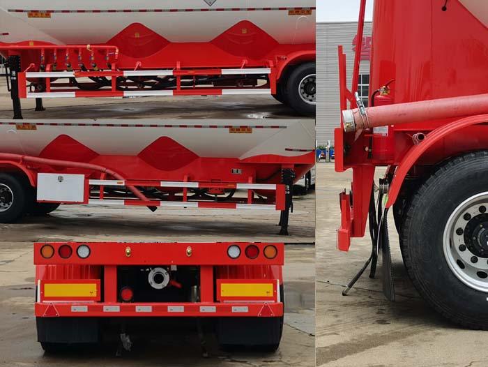 | 其它 | 頂部封閉不可開(kāi)槽,后部不可開(kāi)啟;該車為危險(xiǎn)貨物運(yùn)輸車輛,采用適用于牽引危險(xiǎn)品運(yùn)輸半掛車的牽引車,危險(xiǎn)貨物運(yùn)輸車輛類型:AT型,準(zhǔn)運(yùn)介質(zhì)的最大密度:600千克/立方米;罐體總?cè)萘?52立方米,罐體有效容積:50立方米,罐體外形尺寸(mm):罐體尺寸長(zhǎng)(含封頭)11100mm,最大截面處寬2550mm,最大截面處高3250mm,前后封頭直徑均為2550mm;該車采用空氣懸架,安裝盤(pán)式制動(dòng)器;EBS系統(tǒng)生產(chǎn)廠家:廣州瑞立科密汽車電子股份有限公司;EBS型號(hào):CM-TEBS;側(cè)面及后下部防護(hù)裝置所用材料材質(zhì)為:Q235B,側(cè)面及后下部防護(hù)裝置與車輛連接方式均為焊接,后部防護(hù)裝置的主要尺寸參數(shù):斷面尺寸(mm)為120×68,離地高度為:500mm;選裝車輛前部不加裝機(jī)組,選裝走臺(tái)樣式,選裝管道樣式. | ||