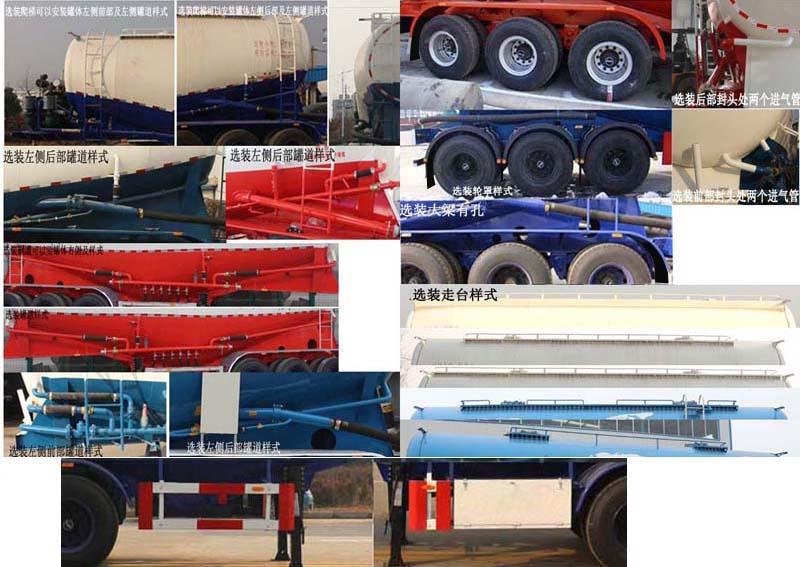 罐體有效容積為:50立方米,運(yùn)輸介質(zhì):粉煤灰,介質(zhì)堆密度:620千克/立方米,罐體尺寸(不含封頭)長(zhǎng):9300mm,最大寬度:2490mm,最大截面高度:3280mm,最小封頭直徑:2010mm;選裝車輛前部不加裝機(jī)組,不帶機(jī)組時(shí)外形尺寸為(mm):10200×2500×4000,選裝爬梯的安裝個(gè)數(shù)和位置,輪罩樣式和罐體樣式;選裝大梁后部可以為弧形結(jié)構(gòu),選裝輪罩樣式及鋁合金輪轂,選裝走臺(tái)樣式,選裝罐頂升降護(hù)欄,頂部可為擋水槽式也可為走臺(tái)式,選裝前后封頭處進(jìn)氣管位置和個(gè)數(shù),工具箱位置可選裝,選裝罐蓋個(gè)數(shù)及位置,選裝罐體罐道的樣式,選裝大梁可以為鉆孔樣式,選裝左側(cè)罐道樣式;車長(zhǎng)為10950mm時(shí),軸距為;5430+1310+1310,5200+1310+1310,前懸/后懸:-/1430;車長(zhǎng)為10200mm時(shí),軸距為;5430+1310+1310,5200+1310+1310,前懸/后懸:-/1430;ABS系統(tǒng)生產(chǎn)廠家:威伯科汽車控制系統(tǒng)(中國(guó))有限公司和廣州瑞立科密汽車電子股份有限公司,梁山順安達(dá)汽車科技有限公司,山東梁山德?tīng)柛F嚳萍加邢薰?型號(hào):4005000810 4S2M和CM2XL-4S/2K(4S/2M),SAD-ABS4S/2M,DEF-ABS4S/3M;側(cè)面及后下部防護(hù)裝置所用材料材質(zhì)為:Q235,側(cè)面及后下部防護(hù)裝置與車輛連接方式均為:螺栓連接或焊接,后部防護(hù)裝置的主要尺寸參數(shù):斷面尺寸(mm)為120×68,離地高度為:500mm.頂部封閉不可開槽,后部不可開啟 |