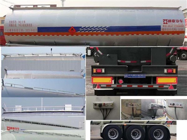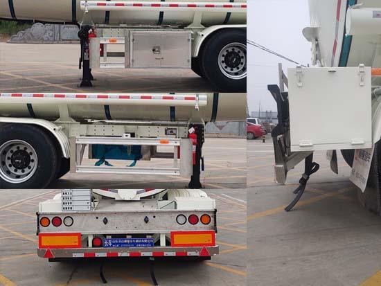 采用適用于牽引危險(xiǎn)品運(yùn)輸半掛車的牽引車.類項(xiàng)號(hào):3,運(yùn)輸危險(xiǎn)貨物車輛的類型為:FL.罐體有效容積:34立方米;該車加裝保溫層,罐體為鵝頸式,保溫層內(nèi)部罐體外形尺寸為:長(zhǎng)9600mm,前端直徑為:2030mm,后端直徑為:2280mm,當(dāng)保溫層厚度為:50mm,罐體(含保溫層)尺寸為:長(zhǎng)9700mm,前端直徑為:2130mm,后端直徑為:2380mm;當(dāng)保溫層厚度為:80mm,罐體(含保溫層)尺寸為:長(zhǎng)9760mm,前端直徑為:2190mm,后端直徑為:2440mm;當(dāng)保溫層厚度為:100mm,罐體(含保溫層)尺寸為:長(zhǎng)9800mm,前端直徑為:2230mm,后端直徑為:2480mm;選裝保溫層內(nèi)部罐體外形尺寸為:長(zhǎng)9200mm,前端直徑為:2010mm,后端直徑為:2260mm,當(dāng)保溫層厚度為:50mm,罐體(含保溫層)尺寸為:長(zhǎng)9300mm,前端直徑為:2110mm,后端直徑為:2360mm;當(dāng)保溫層厚度為:80mm,罐體(含保溫層)尺寸為:長(zhǎng)度為:9360mm,前端直徑為:2170mm,后端直徑為:2420mm;當(dāng)保溫層厚度為:100mm,罐體(含保溫層)尺寸為:長(zhǎng)度9400mm,前端直徑為:2210mm,后端直徑為:2460mm;選裝號(hào)牌照板安裝位置,選裝后組合燈為圓形樣式,選裝后尾樣式;選裝外蒙皮樣式及有無(wú)繃帶結(jié)構(gòu),選裝走臺(tái)樣式,選裝電氣路連接器固定座安裝位置(中間/左側(cè)/右側(cè)),當(dāng)輪胎型號(hào)為11R22.5 12PR時(shí),輪胎中間加裝雨簾;ABS系統(tǒng)生產(chǎn)廠家:廣州瑞立科密汽車電子股份有限公司,廣州市西合汽車電子裝備有限公司,ABS型號(hào):CM2XL-4S/2M,SXH-GQ4S2M-E01;側(cè)面及后下部防護(hù)裝置所有材料材質(zhì):Q235B,側(cè)面及后下部與車輛連接方式均為:螺栓連接,后部防護(hù)裝置的主要尺寸參數(shù):斷面尺寸(mm):120×68,離地高度:500mm.車長(zhǎng)/牽引銷到車輛最前端距離/軸距/后懸(mm)對(duì)應(yīng)關(guān)系為:10200/1400/4830+1310+1310/1350,10200/1250/4980+1310+1310/1350,9800/1300/4530+1310+1310/1350,9800/1150/4680+1310+1310/1350. ![]() ![]() ![]()