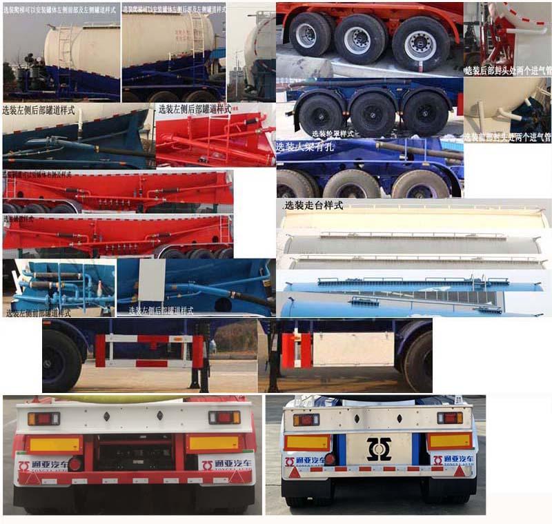 | 其它 | 罐體總?cè)萘?33.5立方米,罐體有效容積:31.9立方米.整車外形尺寸為(長×寬×高mm):9500×2500×3950,4000時,罐體外形尺寸為:長(不含封頭)7800mm,前后封頭直徑:1810mm,最大寬度:2500mm,最大截面處高度:3100mm;整車外形尺寸為(長×寬×高mm):9500×2550×3950,4000時,罐體外形尺寸為:長(不含封頭)7800mm,前后封頭直徑:2010mm,最大截面處高度:3100mm,罐體最大寬度:2550mm;不帶機組時,外形尺寸為(長×寬×高mm):8720×2500,2550×3950,4000.ABS系統(tǒng)生產(chǎn)廠家:廣州瑞立科密汽車電子股份有限公司,梁山順安達汽車科技有限公司,山東梁山德爾福汽車科技有限公司,ABS型號:CM2XL-4S/2K(4S/2M),SAD-ABS4S/2M,DEF-ABS4S/3M;側(cè)面及后下部防護裝置所用材料材質(zhì)均為:Q235,側(cè)面及后下部防護裝置與車輛連接方式均為:螺栓連接或焊接,后部防護裝置的主要尺寸參數(shù):斷面尺寸(mm)為120×68,離地高度為:500mm.頂部封閉不可開槽,后部不可開啟.選裝雙助吹樣式,選裝支腿連接件樣式,選裝外接氣源樣式,選裝壓力表安裝位置,選裝大梁后部可以為弧形,選裝燈具型號及后組合燈所在部件的樣式,選裝輪罩樣式及鋁合金輪轂,選裝走臺樣式,選裝罐頂升降護欄,頂部可為擋水槽式也可為走臺式,選裝前后封頭處進氣管位置和個數(shù),工具箱位置可選裝(可以在一側(cè),兩側(cè)或兩側(cè)都無),選裝罐體罐道的樣式,選裝大梁可以為鉆孔樣式,選裝爬梯安裝位置,選裝機組樣式,選裝部件位置因為制造誤差可有小變化. | ||