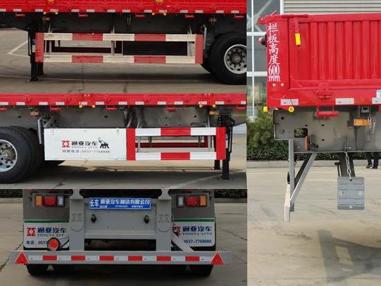 | 其它 | 卸貨方式為:側(cè)卸;安裝有手動鎖緊機構(gòu);選裝前擋樣式,選裝側(cè)面樣式(五開門或六開門)及欄板樣式(豎瓦楞),選裝后尾樣式,選裝欄板結(jié)構(gòu)為下開門,吊開門結(jié)構(gòu),選裝包角樣式及合頁樣式;ABS系統(tǒng)生產(chǎn)廠家:廣州瑞立科密汽車電子股份有限公司,梁山順安達汽車科技有限公司,廣州市西合汽車電子裝備有限公司,山東梁山德爾福汽車科技有限公司,型號:CM2XL-4S/2M,SAD-ABS4S/2M,XH-GQ4S2M-E01,DEF-ABS4S/3M;側(cè)面及后下部防護裝置所用材料材質(zhì)為:Q235B,側(cè)面防護裝置與車輛連接方式為螺栓連接,后下部防護裝置與車輛連接方式為焊接,后部防護裝置的主要尺寸參數(shù):斷面尺寸(mm)為140×50,離地高度為:440mm; | ||