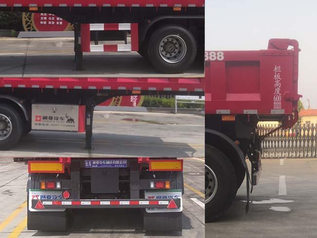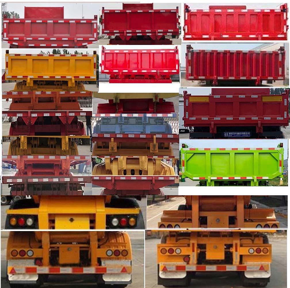 | 其它 | 卸貨方式為:后卸;安裝有手動鎖緊機(jī)構(gòu);選裝后部燈具樣式,選裝后翻轉(zhuǎn)支架,選裝后部欄板樣式,選裝前檔樣式,選裝側(cè)面樣式,選裝號牌板樣式,選裝液壓油箱安裝位置,選裝尾部標(biāo)志板安裝位置,選裝大梁后部擋板為鉆孔樣式;ABS系統(tǒng)生產(chǎn)廠家:廣州瑞立科密汽車電子股份有限公司,廣州市西合汽車電子裝備有限公司,山東梁山德爾福汽車科技有限公司,型號:CM2XL-4S/2M,XH-GQ4S2M-E01,DEF-ABS 4S/3M;側(cè)面及后下部防護(hù)裝置所用材料材質(zhì)為:Q235B,側(cè)面防護(hù)裝置與車輛連接方式為螺栓連接,后下部防護(hù)裝置與車輛連接方式為焊接,后部防護(hù)裝置的主要尺寸參數(shù):斷面尺寸(mm)為140×50,離地高度為:490mm;車長/牽引銷到車輛最前端距離/軸距/后懸對應(yīng)關(guān)系為:9500/1000/4540+1310+1310/1340,9000/900/4290+1310+1310/1190,8700/850/4150+1310+1310/1080. | ||