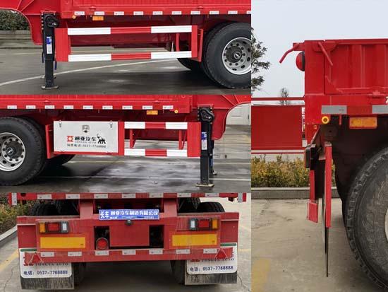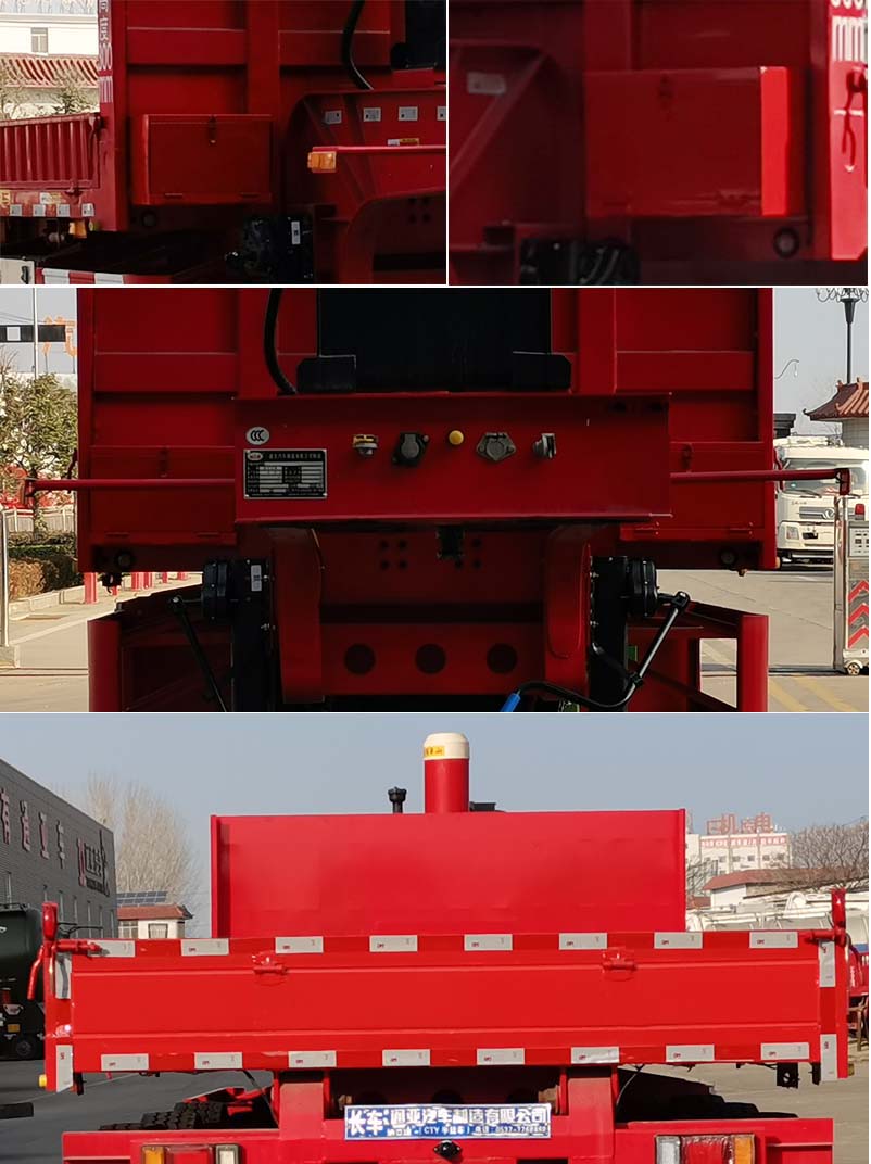 | 其它 | 卸貨方式為:后卸;安裝有手動(dòng)鎖緊機(jī)構(gòu);選裝欄板高度,ABS系統(tǒng)生產(chǎn)廠家:廣州瑞立科密汽車(chē)電子股份有限公司,廣州市西合汽車(chē)電子裝備有限公司,山東梁山德?tīng)柛F?chē)科技有限公司,型號(hào):CM2XL-4S/2M,XH-GQ4S2M-E01,DEF-ABS 4S/3M;側(cè)面及后下部防護(hù)裝置所用材料材質(zhì)為:Q235B,側(cè)面防護(hù)裝置與車(chē)輛連接方式為螺栓連接,后下部防護(hù)裝置與車(chē)輛連接方式為焊接,后部防護(hù)裝置的主要尺寸參數(shù):斷面尺寸(mm)為120×60,離地高度為:500mm;車(chē)長(zhǎng)/牽引銷(xiāo)到車(chē)輛最前端距離/軸距/后懸對(duì)應(yīng)關(guān)系為:9700/520/5800+1310+1310/760,9600/500/5680+1310+1310/800,9500/500/5580+1310+1310/800. | ||