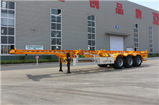 通亞汽車隆重推出“玉麒麟”款集裝箱運輸半掛車,并自主研發(fā)出自動轉(zhuǎn)鎖結(jié)構(gòu)。