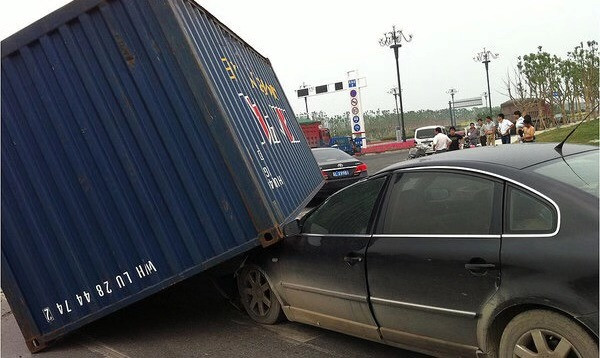 7、2010年8月2日,福州閩侯一過路女子被掉落集裝箱砸中,當場死亡。。。