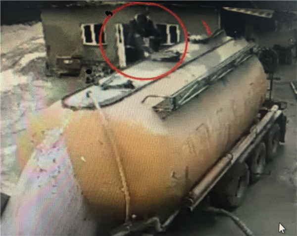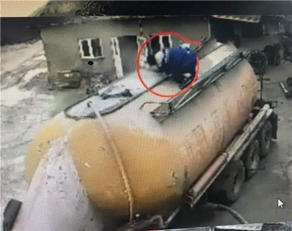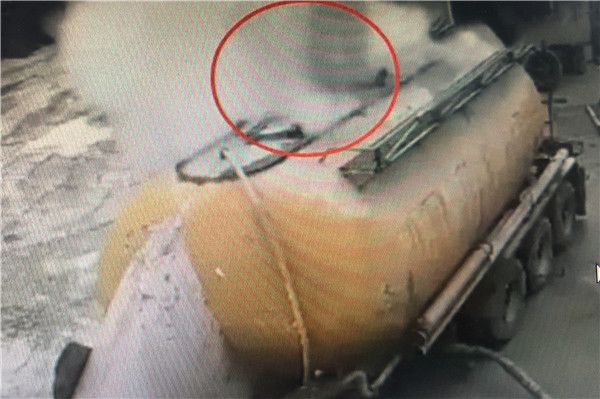 可以看到一輛水泥車正在工作,工作人員突然感覺水泥罐有些不對勁,于是爬到罐頂查看,只見罐頂?shù)姆饪谔幱行┞?,男子順便就擰動罐口,想要看看到底是什么原因,而就在男子左右檢查的時候,水泥罐口突然噴出強大的沖擊力將男子崩飛了出去,狠狠地摔在地上,造成男子當場死亡,這驚險的一幕正好被監(jiān)控記錄下來。