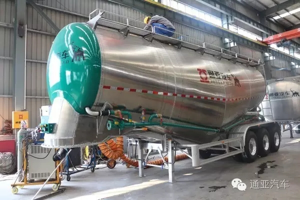 今年隨著GB1589政策的實(shí)施和9.21五部門共同治超,通亞汽車研發(fā)了全國(guó)最輕、中國(guó)第一臺(tái)鋁合金粉粒物料運(yùn)輸半掛車。采用鋁合金罐體,與鋼制罐體相比自重更輕,運(yùn)輸噸位更高,更適合目前計(jì)重收費(fèi)的運(yùn)輸環(huán)境。整車自重僅5T。并在第十二屆中國(guó)(梁山)專用汽車展覽會(huì)首次亮相。