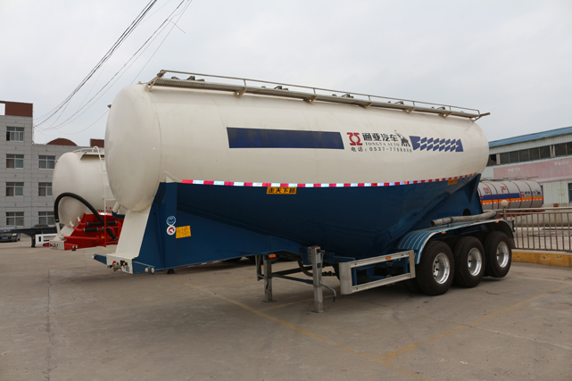 通亞汽車自去年11月份多次考察市場后發(fā)現(xiàn)目前中國市場中存在一些比較特殊的運輸貨物,此類貨物由于流動性差迫使客戶需要使用普通欄板半掛車、倉柵半掛車或者立式粉罐半掛車來運輸。使用普通半掛車運輸既拉的少卸料又需要人工而且運輸及卸料途中還污染環(huán)境,費時費力,是最差的一種運輸方式。由于國家現(xiàn)在嚴查環(huán)保普通半掛車運輸將逐步會淘汰。立式粉罐半掛車雖說卸料干凈但是自重重、不美觀,而且價格太高。這就導致了客戶運輸成本升高、收入降低。通亞汽車本著全心全意為客戶服務的理念、為客戶創(chuàng)造更高利潤的想法,歷時數(shù)月并多次實驗而研發(fā)出了輕型粉罐半掛車新產(chǎn)品----臥式顆粒運輸專用車。