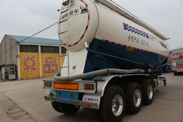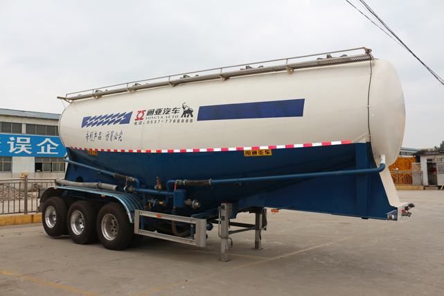 臥式顆粒運輸專用車適用于運輸如細沙、純堿、干混砂漿、糧食、PVC、PTA、PA66等粉末狀或直徑大于0.1mm顆粒狀等流動性差的貨物。