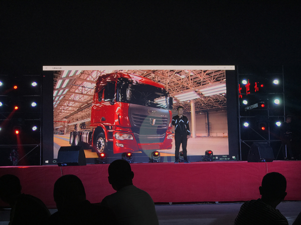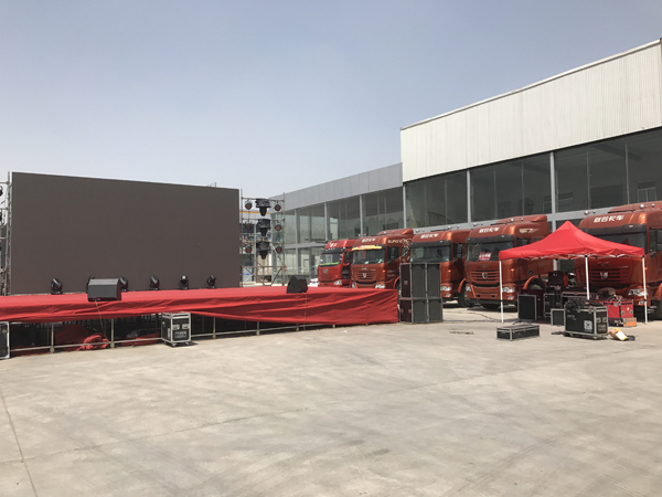 聯(lián)合卡車?guó)欜E汽貿(mào)4S店在店前搭建了歌舞舞臺(tái)。