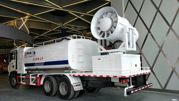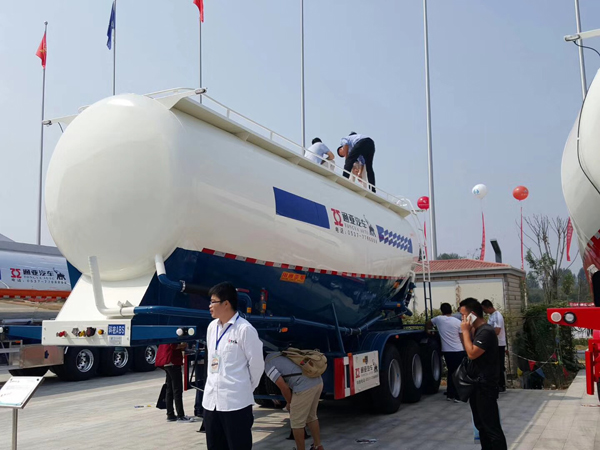 室內(nèi)展館作為精品區(qū)通亞展出鋁合金粉粒物料半掛車、多功能抑塵車、臂架泵車等7個(gè)車型。