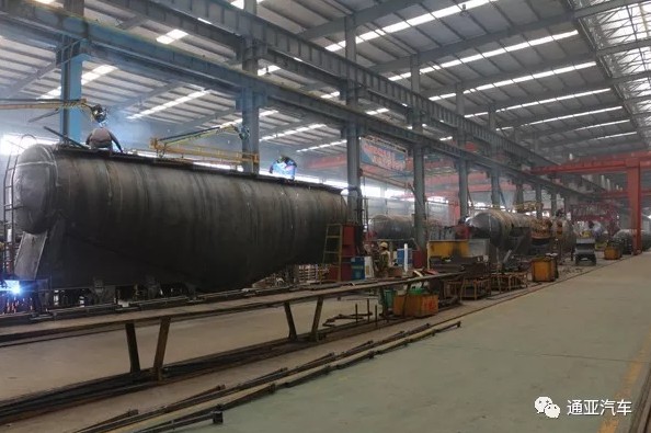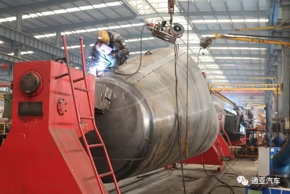 一眼望不到頭的車(chē)間里放著密密麻麻等待焊接的罐體。