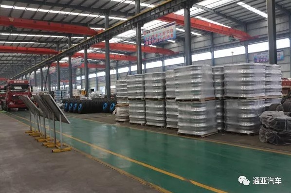 車(chē)間里存放了好多新輪胎、新輪轂,為了滿足客戶所定的訂單又來(lái)了兩大車(chē)。