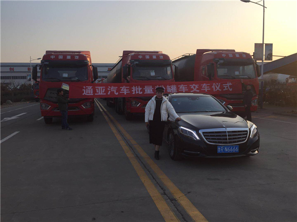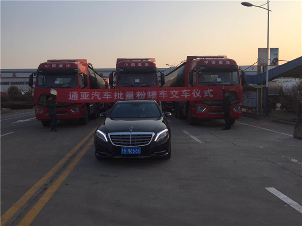 2019年1月21日通亞汽車多年的忠實(shí)客戶寧老板粉罐半掛車20余臺(tái)成功交付客戶,通亞公司為其舉行了交車儀式且雙方代表合影留念。用通亞車,帶你發(fā)發(fā)發(fā)!??!