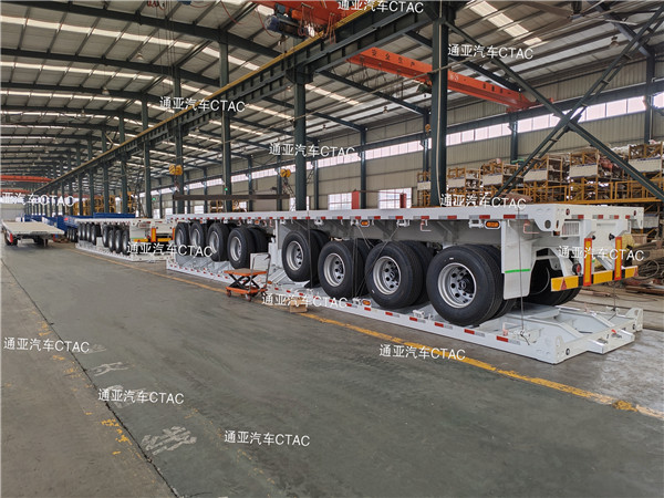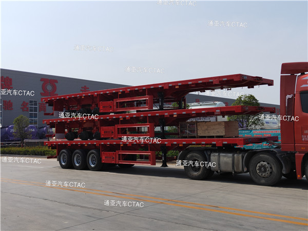集裝箱平板半掛車可運(yùn)輸集裝箱以及散貨等,一車多用深受客戶喜愛(ài)。
